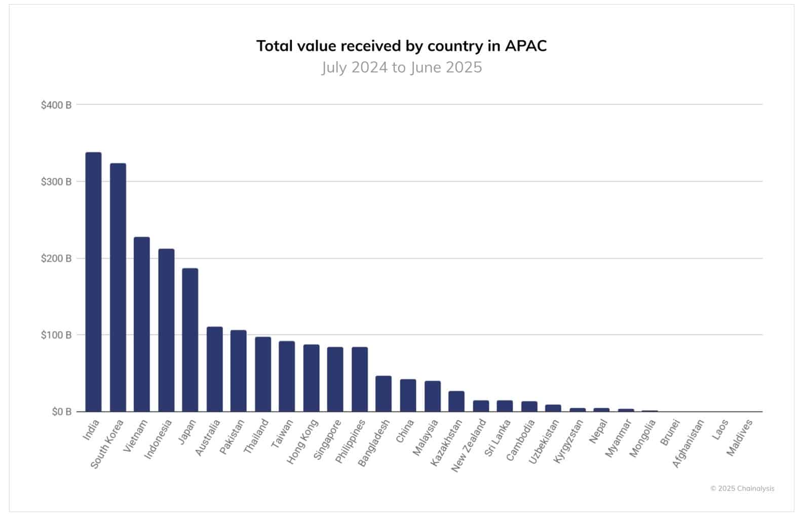 Japan led crypto growth in APAC, with on-chain activity up 120% year over year, driven by regulatory reforms, tax changes, and progress on yen-backed stablecoins, while other major markets grew from already higher adoption bases.