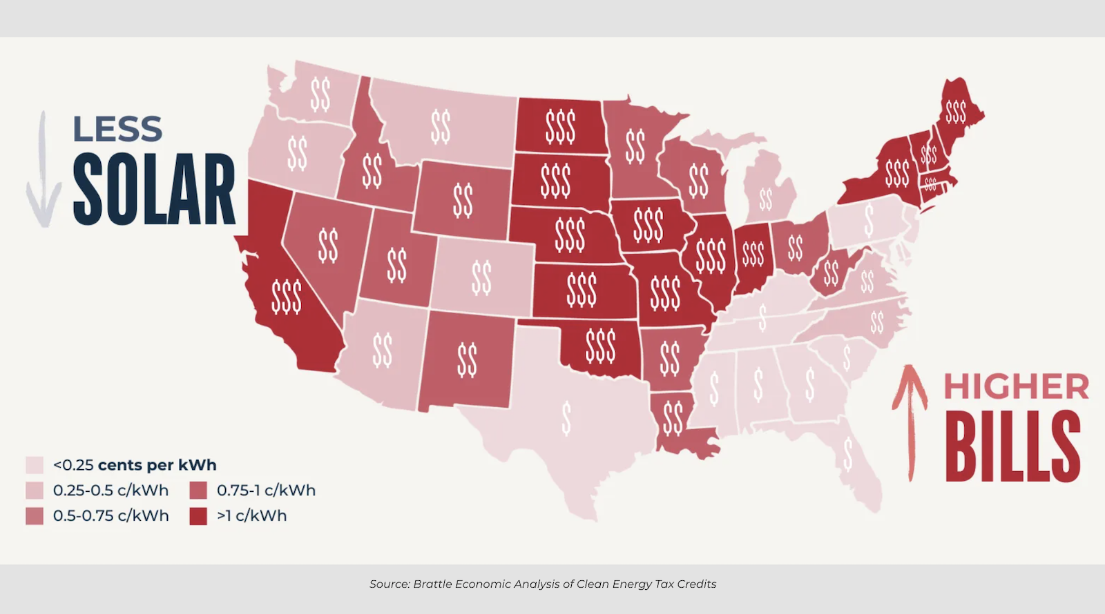 The Solar Energy Industries Association (SEIA) has tried valiantly to bring attention to all the jobs that will be lost in Republican-controlled states and districts if this bill is passed, and how much that will hurt their economies in general. Alas, it does not matter to Republican Congressmen and Congresswomen.