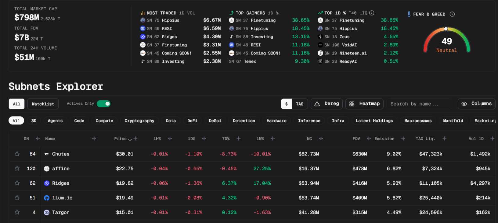 Networks such as Signal (SN100) and Eni (SN101) are earning near-zero TAO, exposing the natural selection at the heart of the protocol.
