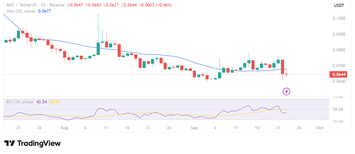BMT Price Analysis: How Could a Break Below $0.0600 Affect the Bearish Trend