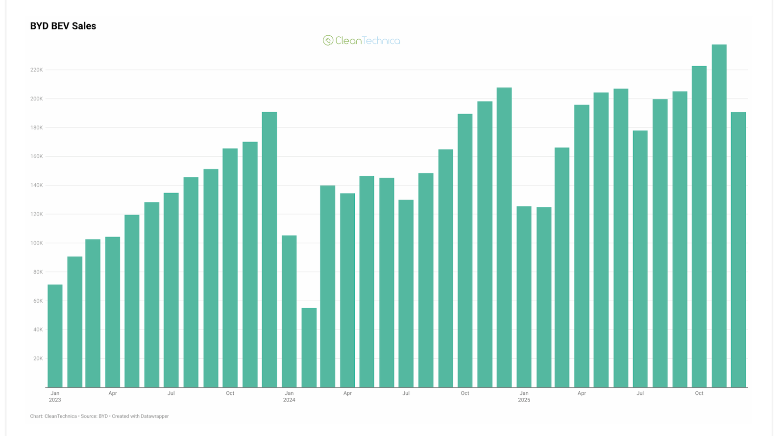 On the flip side, though, BYD’s non-bus commercial vehicle sales soared. They were up 28% in December and up 222% across 2025.