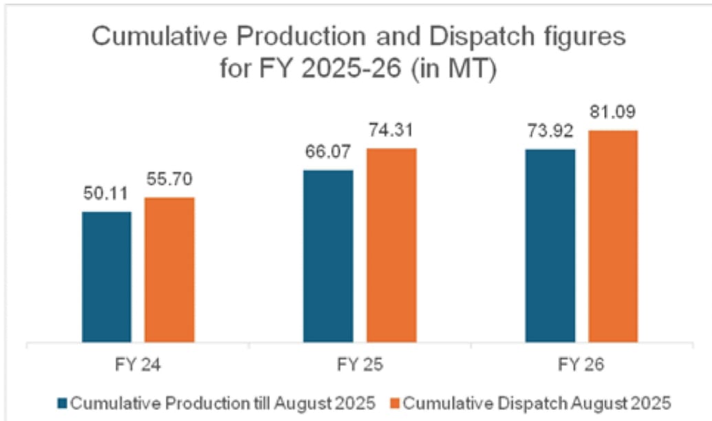 Charts released by the Ministry indicate consistent upward trends in both production and dispatch over the past three years.