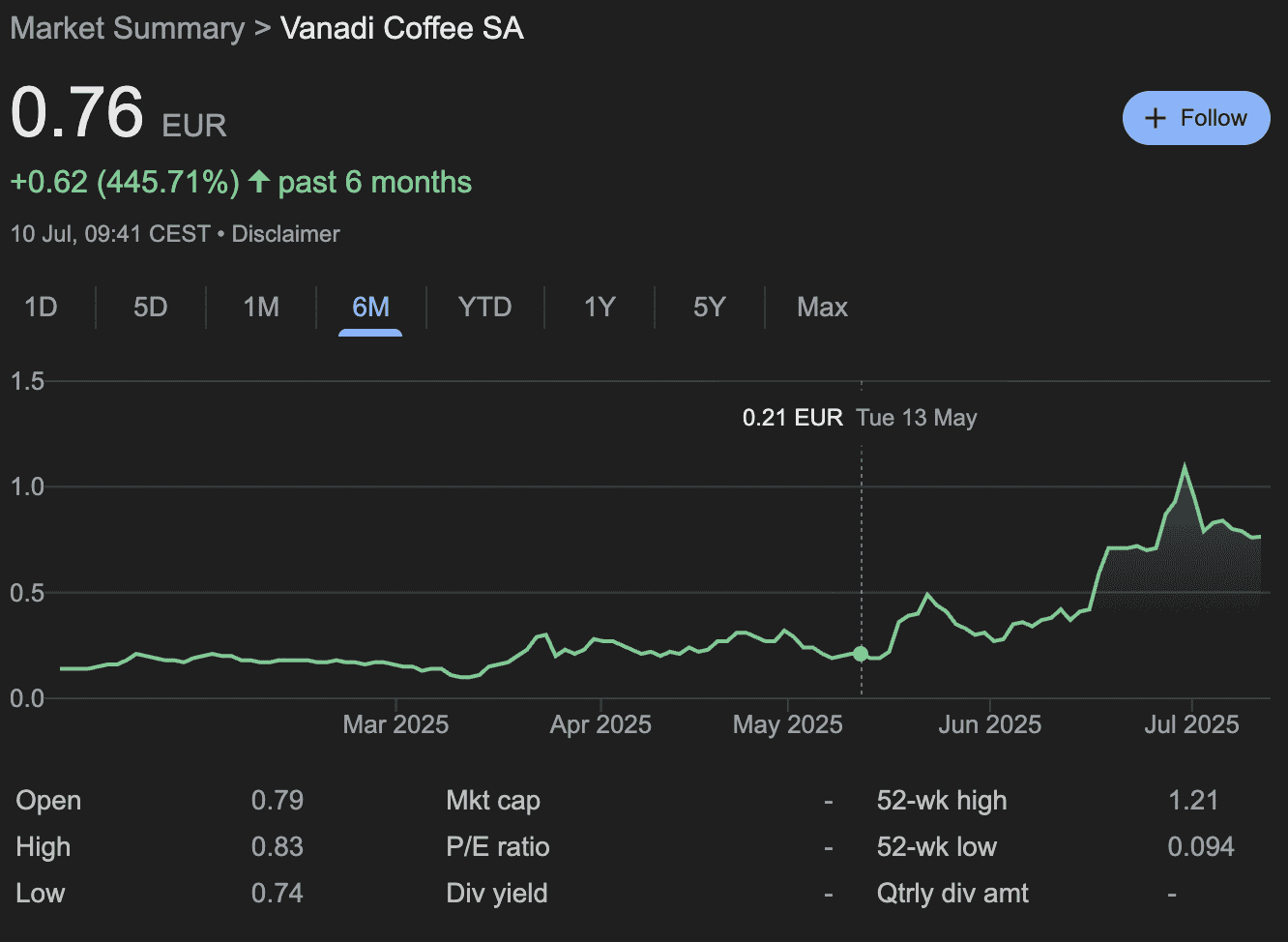 Since the coffee chain made its plans public and began buying 1 BTC each day, its share price has surged by over 135% and is up by more than 430% in the past six months, highlighting the early success of its Bitcoin accumulation strategy.