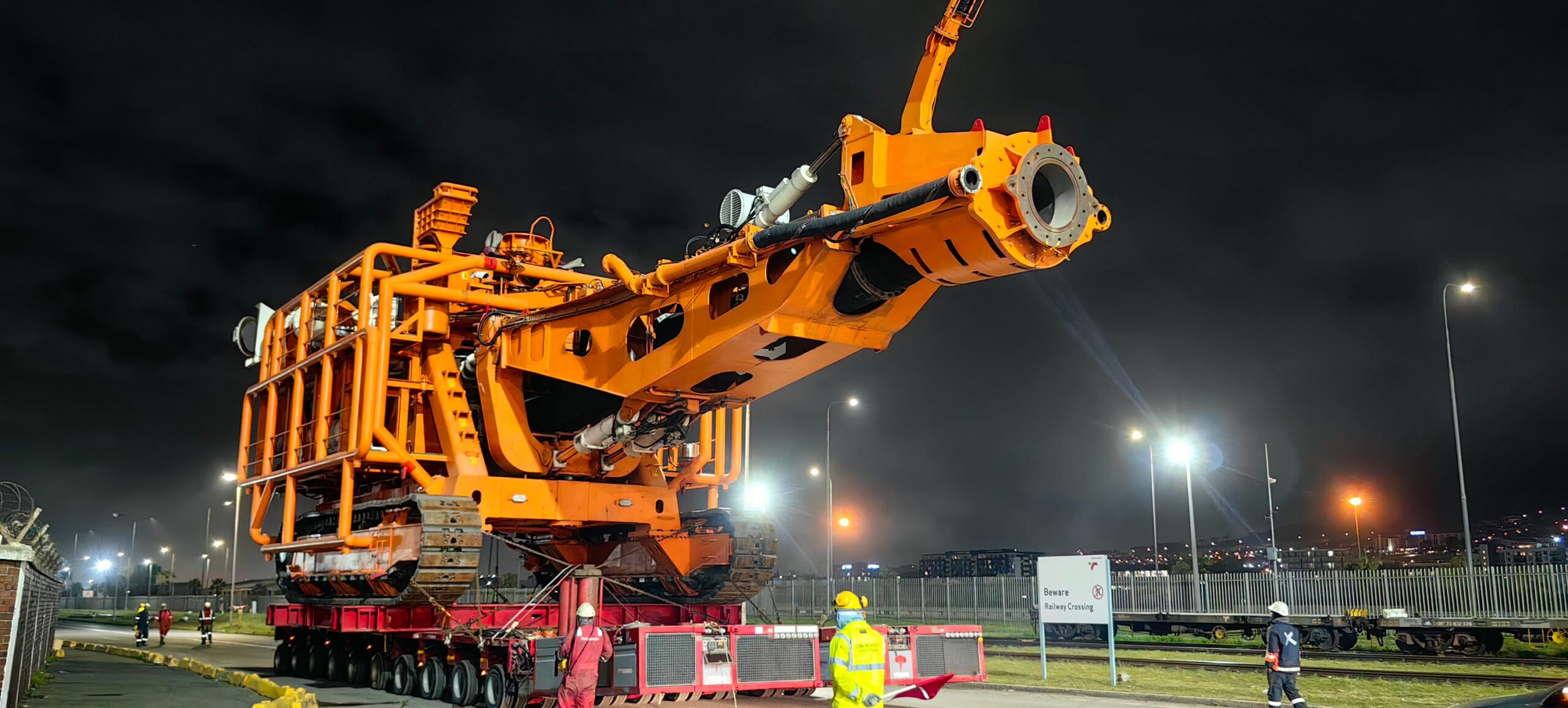 Getting the completed crawler to the harbour took careful planning, according to Senior Project Engineer, Steven Smith. Once at the dock, a 750-t crane hoisted the crawler onto the quay.