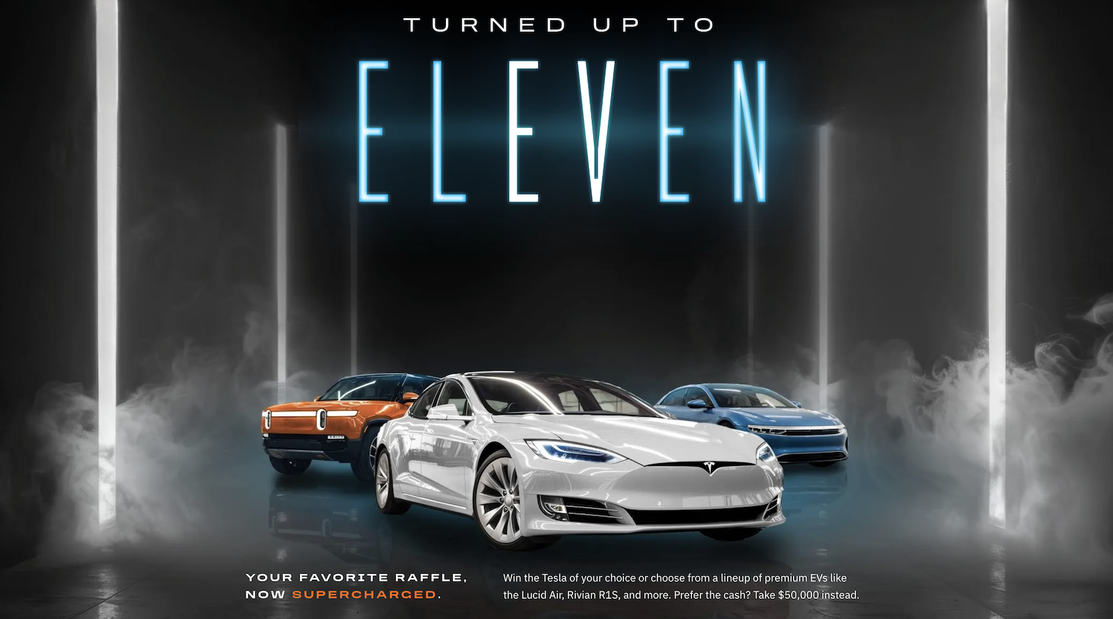 “The grand prize? You get to choose the EV of your dreams: Tesla Model X, Cybertruck, Lucid Air, Rivian R1S — all electric, all stunning, all yours. Truth is, you can select any EV worth up to $80,000, or take the $50,000 cash prize if that’s more your speed.