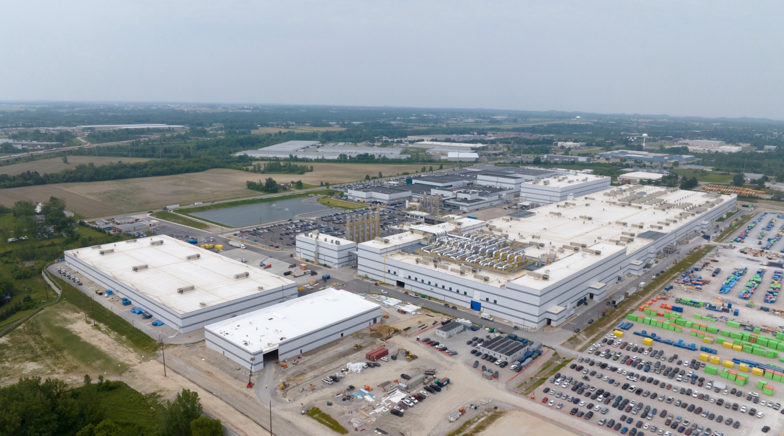 Overview of the huge LG energy manufacturing plant in Holland, Michigan.