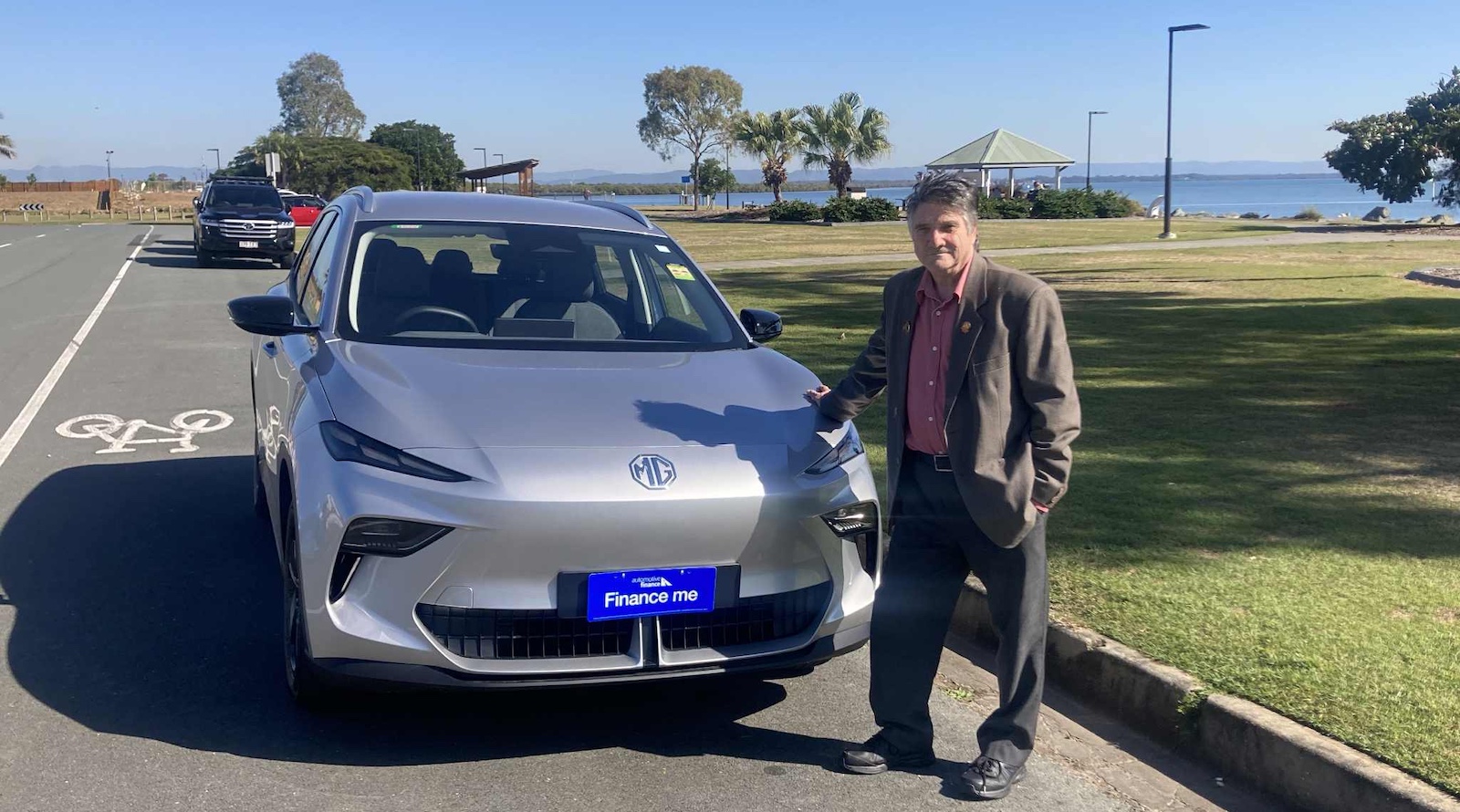 This morning, Majella and went to check out MG’s latest entrant to the crowded Australian electric vehicle market — the MG S5. (What, only one number and one letter? I felt cheated.) And, yes, it comes in red. After being briefly sidetracked by the red Cyberster on display at the dealership, we had a great chat with the young salesperson and a test drive around the Newport seafront near Redcliffe, north of Brisbane. Sadly, we had to drive a grey one.