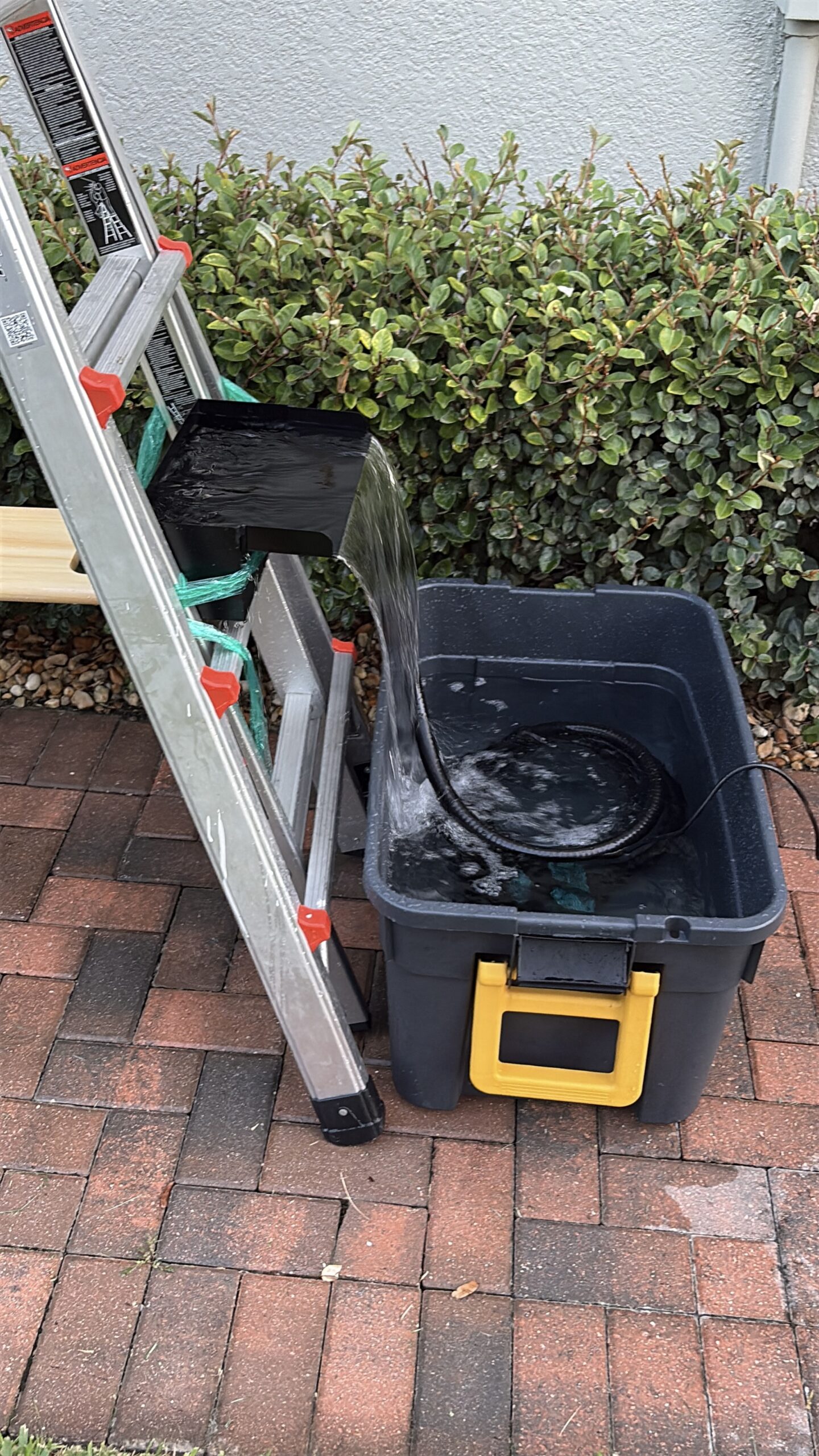 I don’t have a pond that has a border that would work for this, so I tested it with a ladder and a storage box of water.