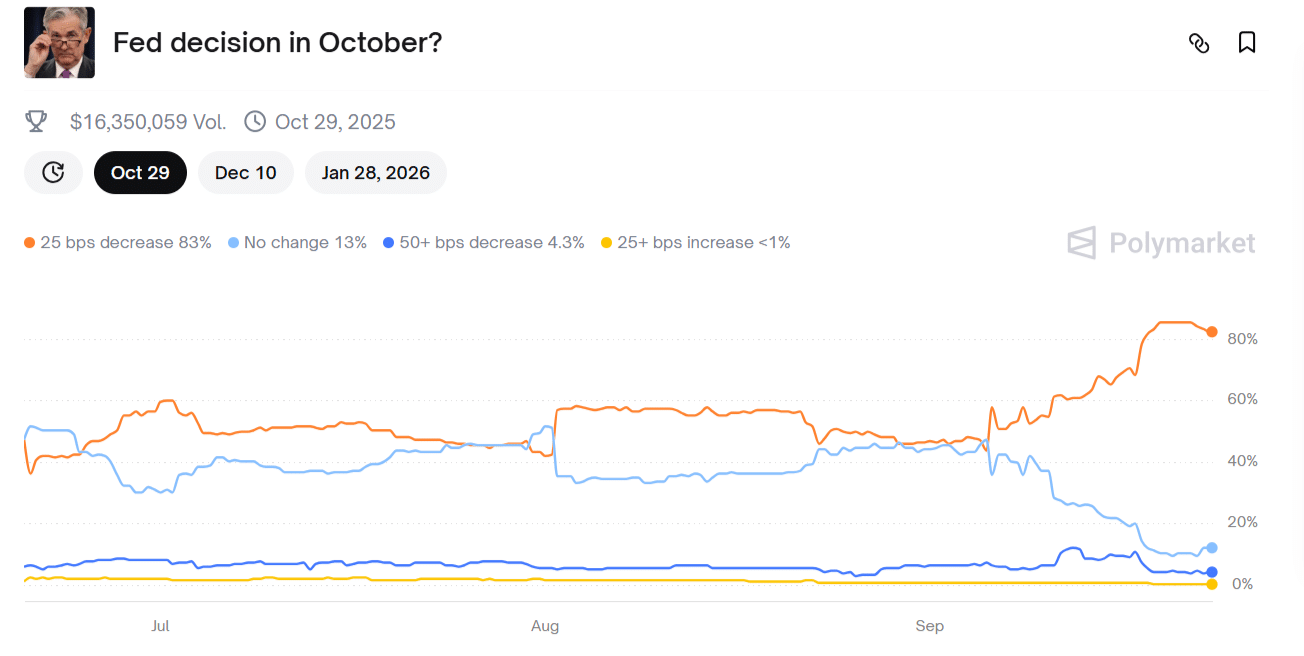 No doubt, pundits at Polymarkets will be following Powell’s tone closely today, as it will decide whether the market leans toward cautious patience or accelerated loosening after the rate cut.