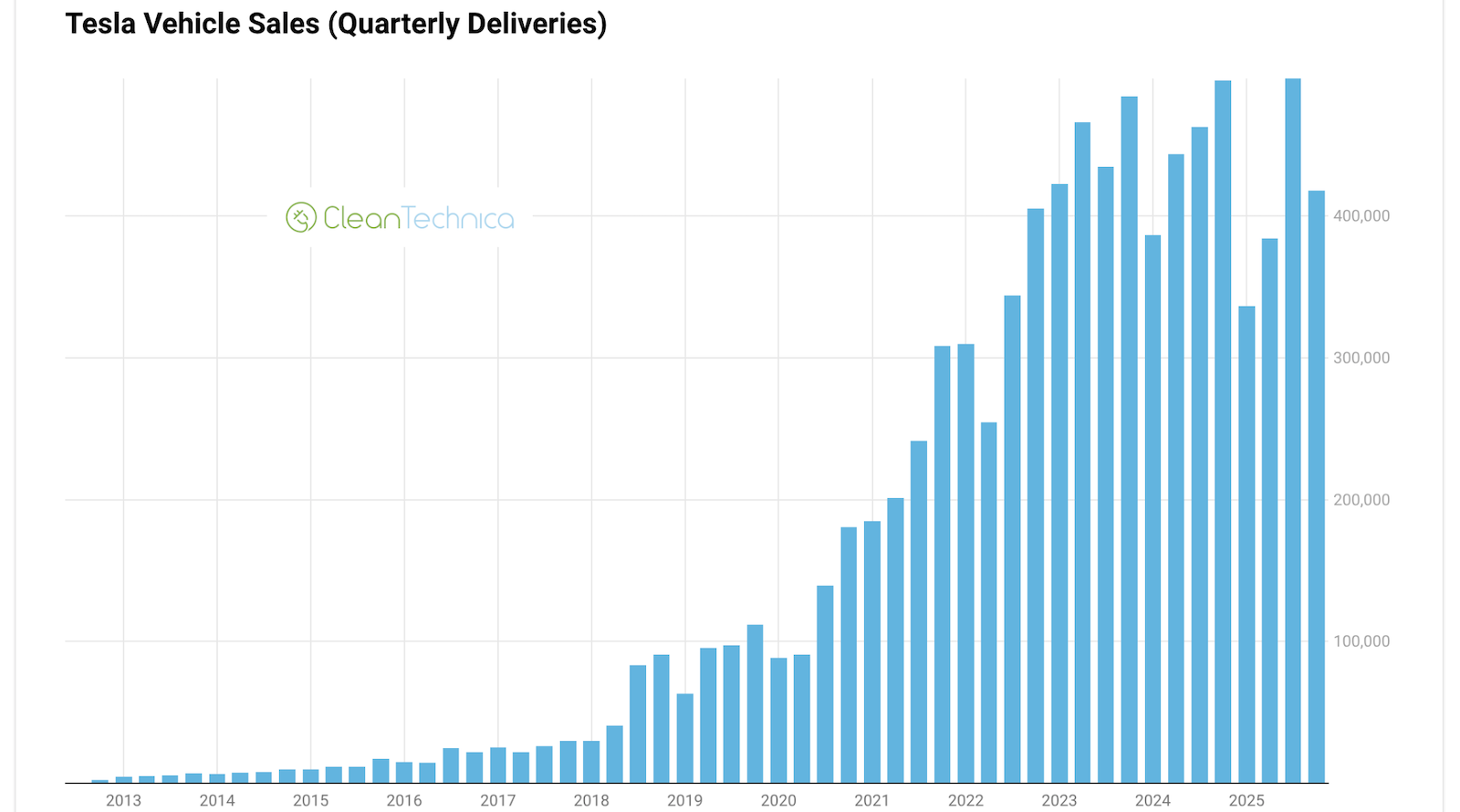As it turns out, Tesla had 418,227 global deliveries in the 4th quarter. That’s down 15.6% compared to the 4th quarter of 2024, and down 13.7% from the 4th quarter of 2023.