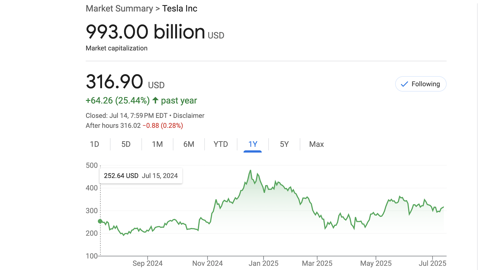 Tesla Market cap: 1 Friking Trillion dollars, ($993 billion at time of writing)