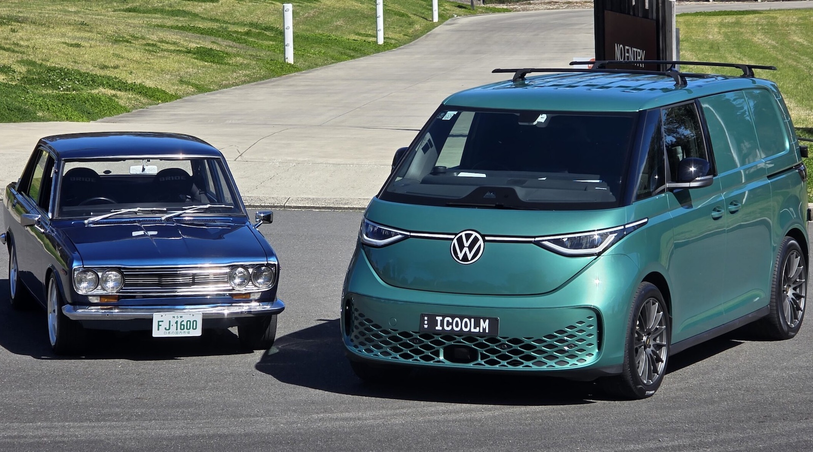 Why buy electric? Not to save the planet, but to have fun and save money. Mark has even lost a little weight because he is not buying treats at the servo. Mark emphasizes that he is a car guy. He compares his Buzz with his favourite Datsun 1600 equipped with an FJ 20 turbo (from a Skyline) for plenty of wheel spin. It has similar power — 220 kW — to what the Buzz offers — 210 kW. But the Buzz’s power is instant. The weight of the Buzz keeps it on the ground. Mark reckons the Datsun would catch up by the time both cars reached 80 km/h.