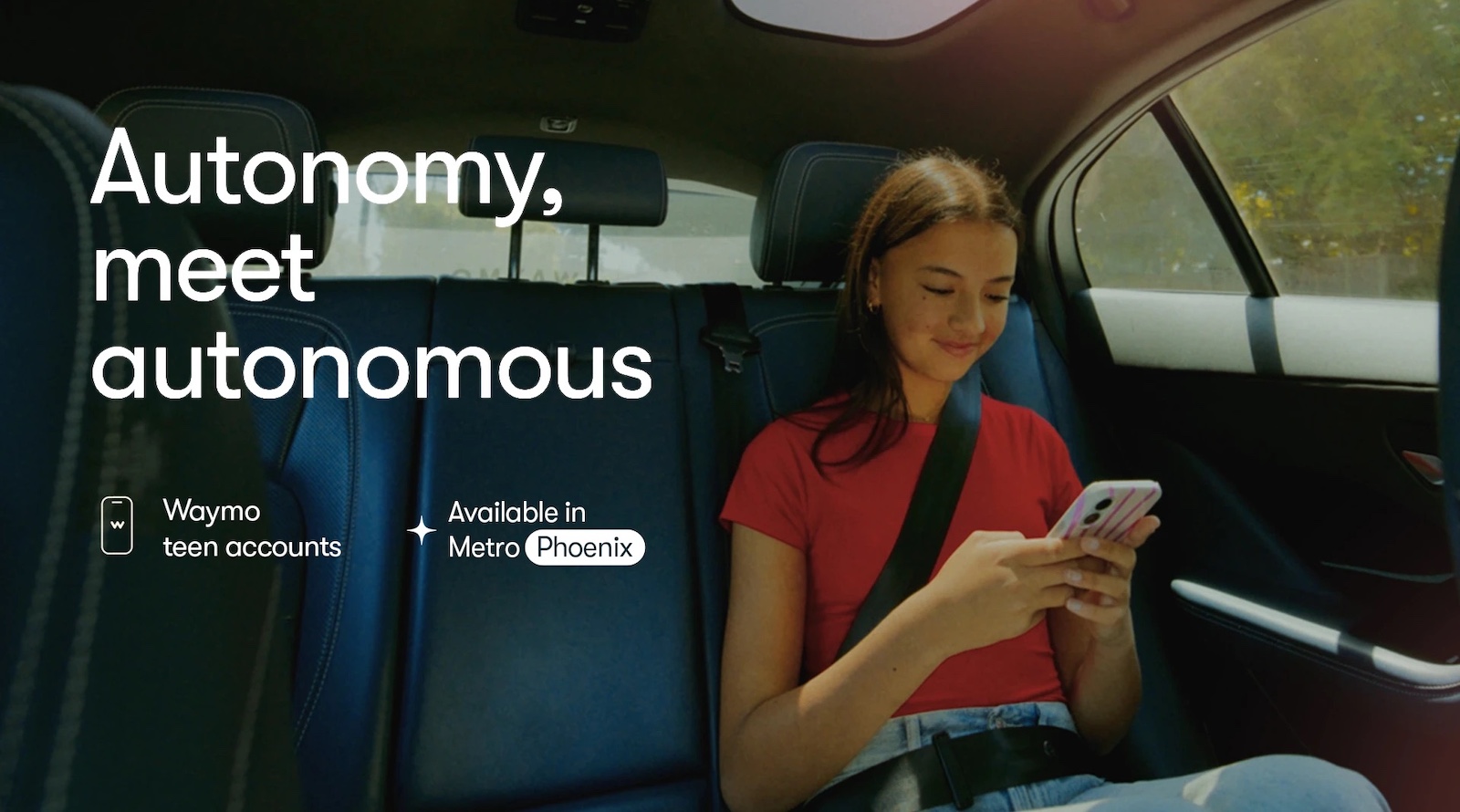 Waymo teen accounts are initially only being offered to our riders in Metro Phoenix, but we intend to offer teen accounts in other cities in the future. If you’re interested in signing up your teen, visit waymo.com/teens to learn more.