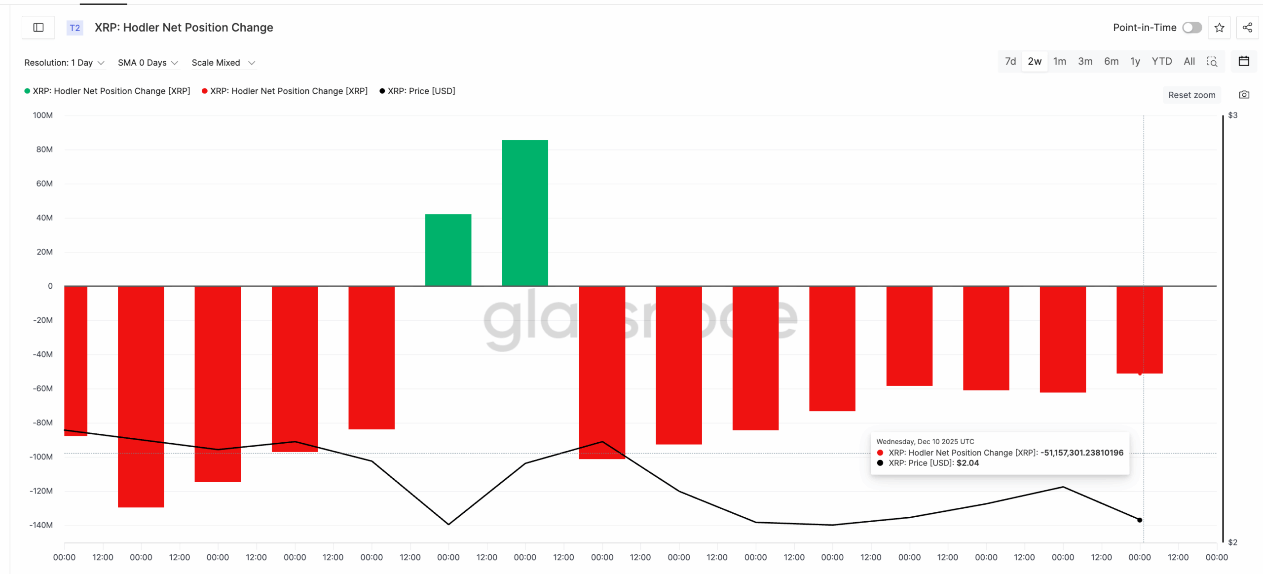 As per Glassnode data, on December 3, they sent out 101,083,156 XRP. By December 10, that number dropped to 51,157,301 XRP. That is close to a -49% fall.